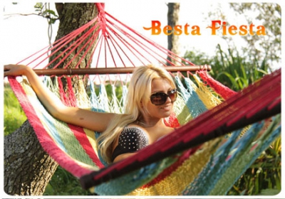 Яркий полосатый гамак MEXICO придется по вкусу всем, кто ценит высокое качество. Выполненный из хлопка гамак очень приятен на ощупь, не липнет к коже в жаркую погоду, гигиеничен и комфортен. Плетеная ткань прекрасно пропускает воздух и отлично тянется. К тому же хлопок обеспечивает гамаку необходимую прочность полотна, комфортный отдых в самую жаркую погоду. Полотно гамака сплетено вручную, эластичные нити легко тянутся, принимая форму вашего тела и обеспечивая максимум удобства.