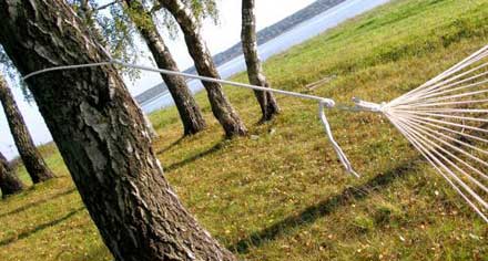Традиционно гамак вешается между деревьями - так было у индейцев Америки, считающейся родиной «hamaka», так происходит и сейчас. Гамак — очень удобное и приятное место для отдыха на даче, в кемпинге, на пикнике. Но любой гамак ограничен определенной длинной, меж тем — не все деревья растут «под заказ» на нужном расстоянии. Для того чтобы подвесить гамак, нужно прочное крепление, оно же выполняет функцию «продления» нужного расстояния до ближайшего дерева. Так, расстояние между «рукавами» или кольцами для подвешивания традиционного латиноамериканского гамака составляет 3.0-3.5м, но с помощью крепления длину гамака возможно как увеличить, так и уменьшить до нужного расстояния.